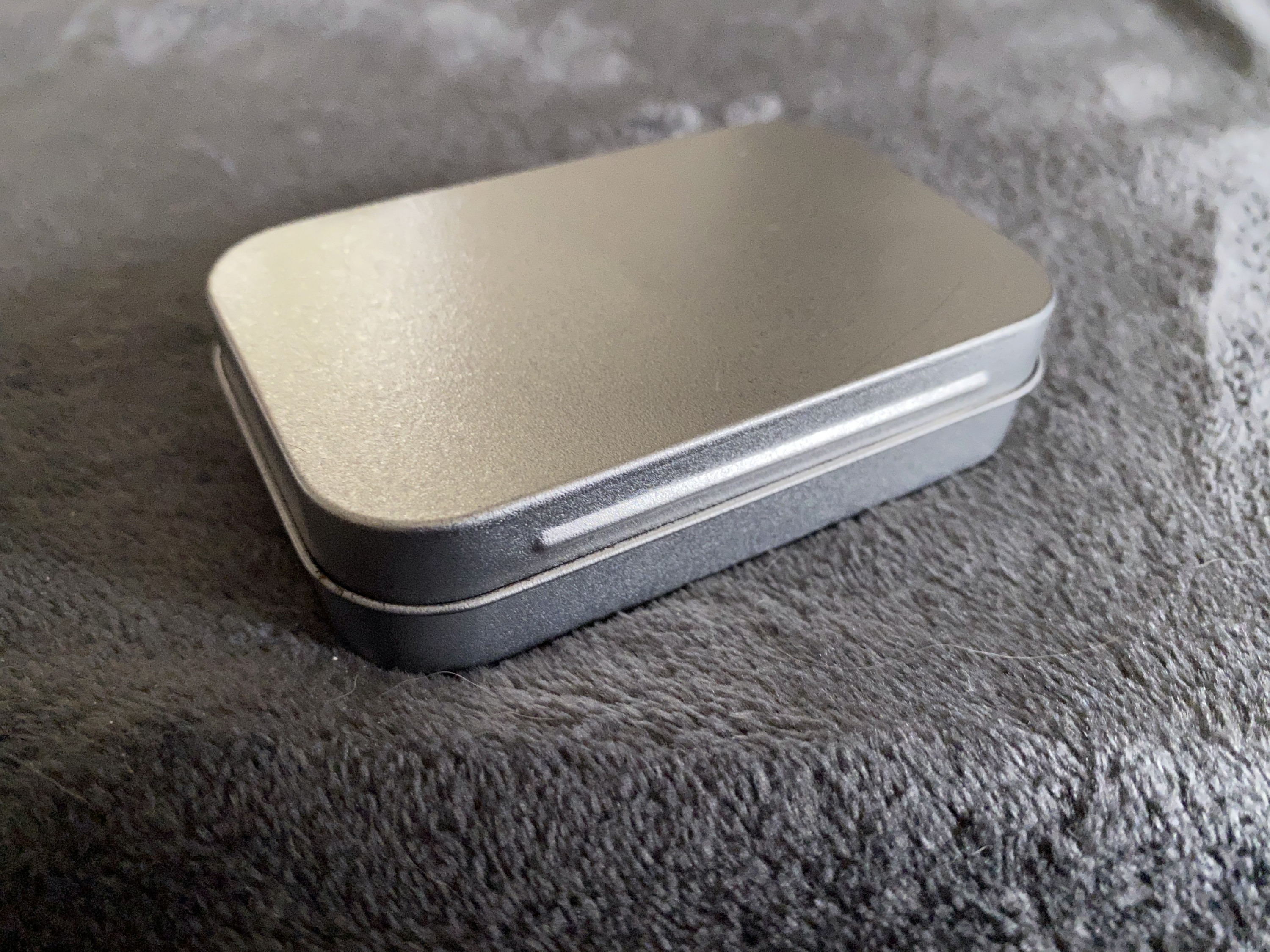 Keycard Case Blechdose. Da die Dose abgerundete Ecken hat passen die Ladekarten nicht ohne anpassen rein. Die Ecken müssen ein wenig gestutzt werden.